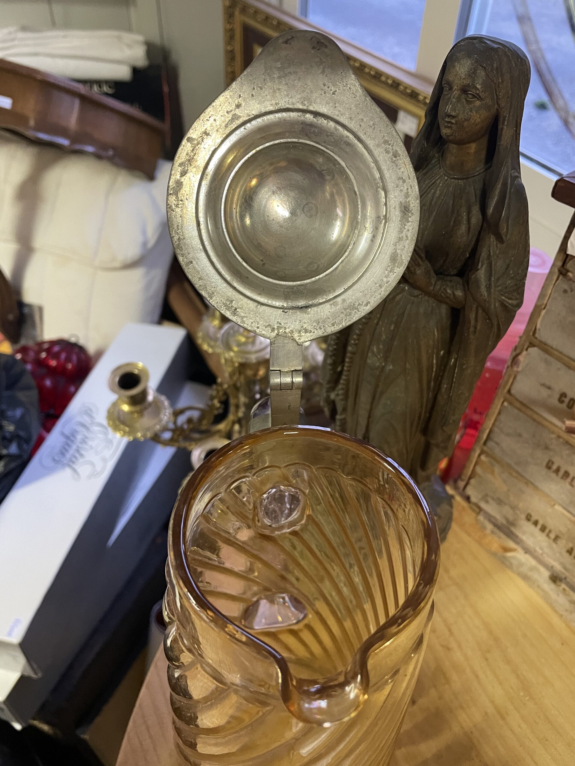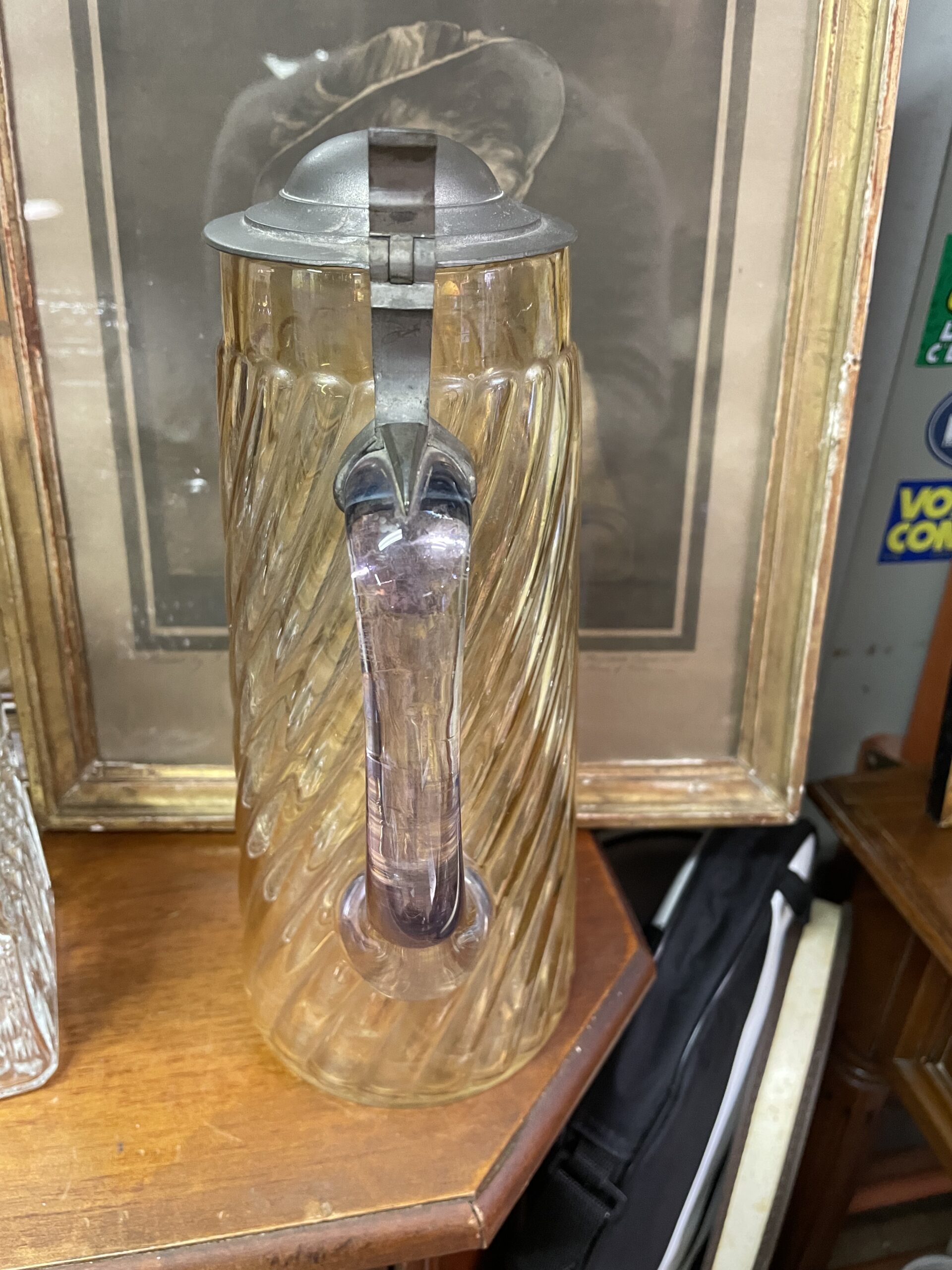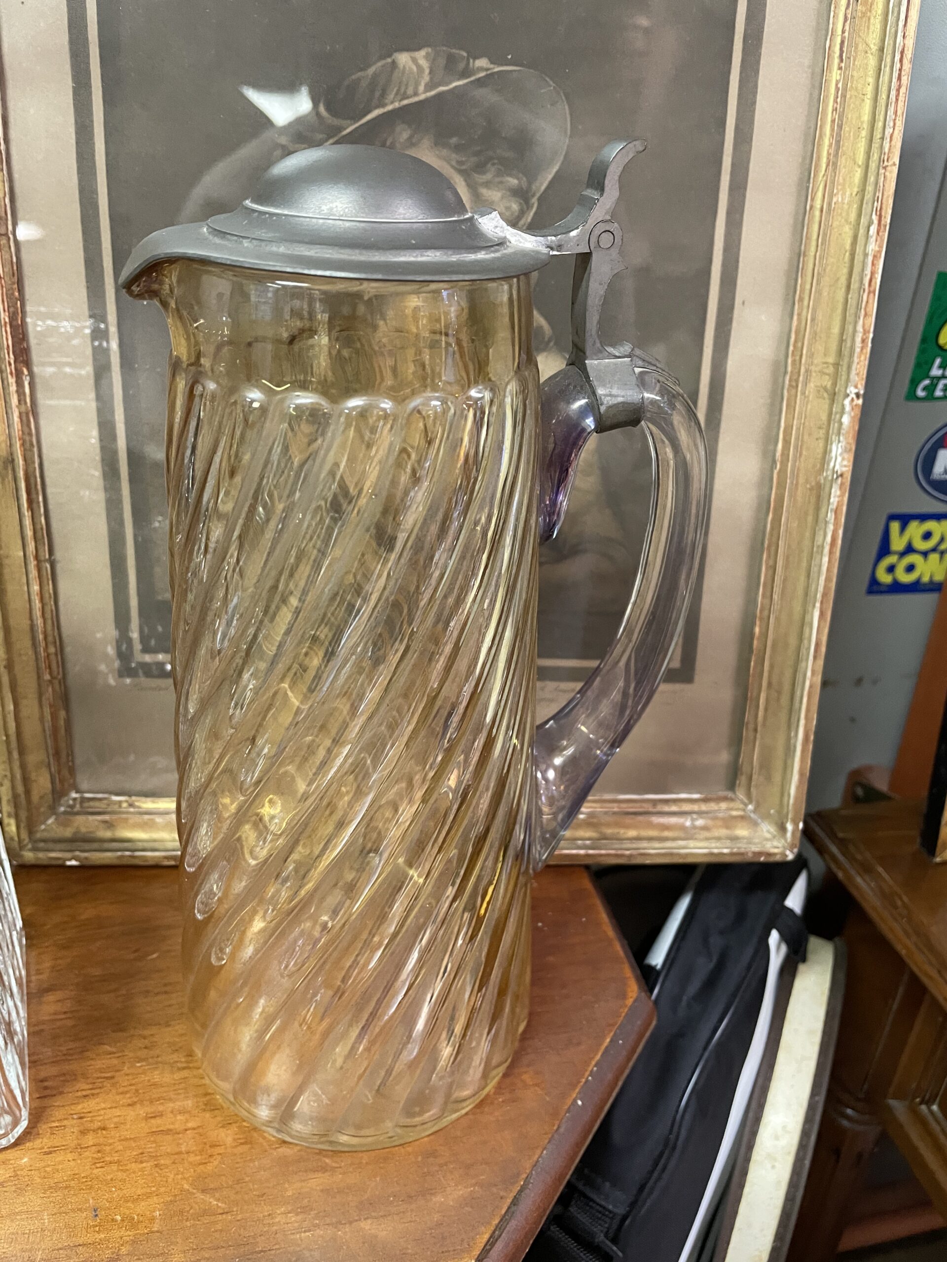 Pichet en verre et métal avec anse couleur rosé