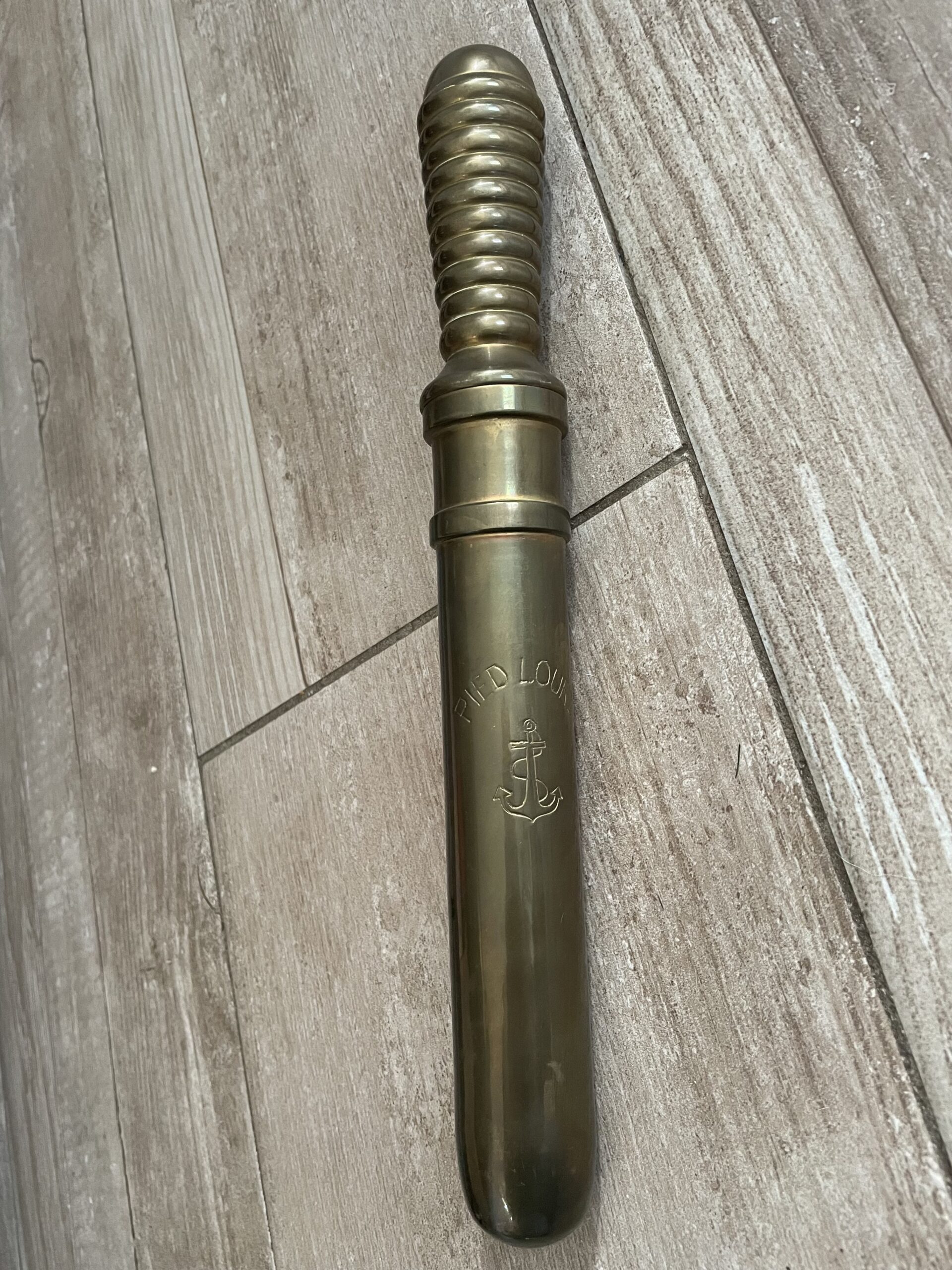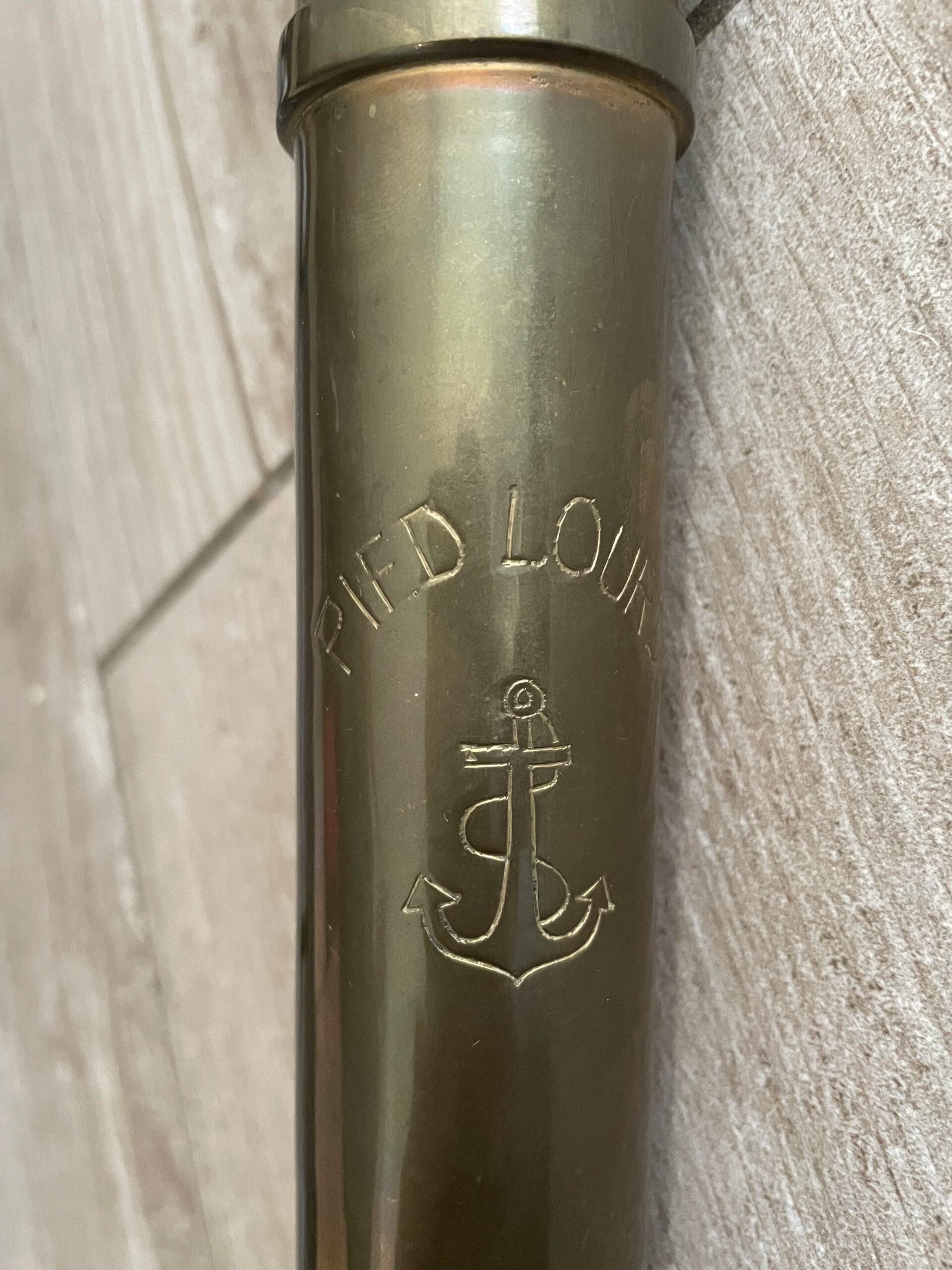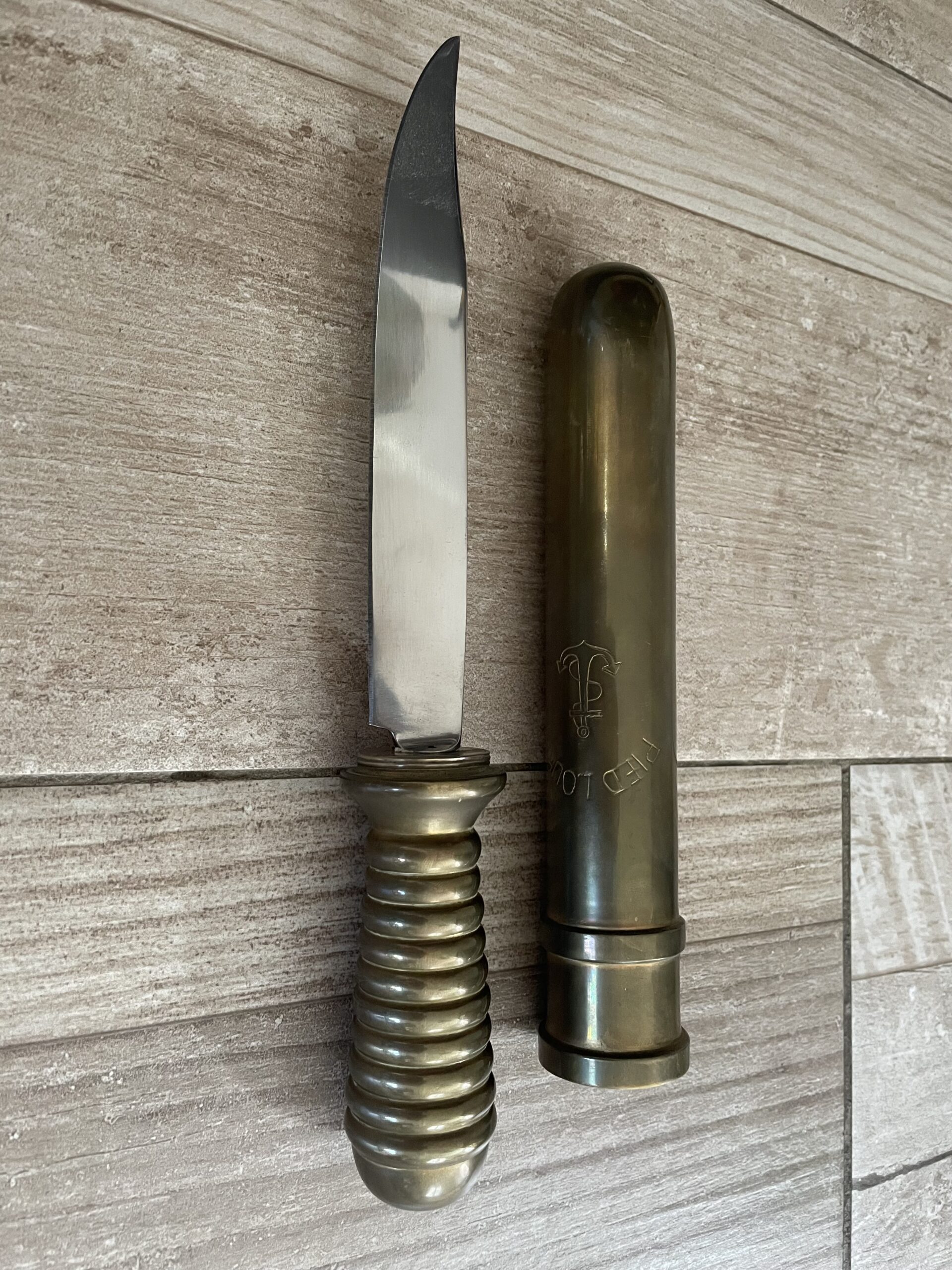 Magnifique couteau de scaphandrier, fourreau portant le marquage Pied Lourd ainsi qu’une ancre de marine.